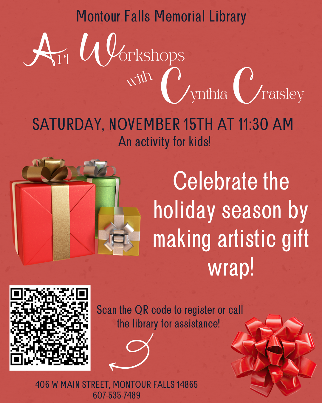 Celebrate the holiday season by making artistic gift wrap! Participants will use rubber stamps to make several sheets of colorful handmade wrapping paper. Just in time for the holidays!