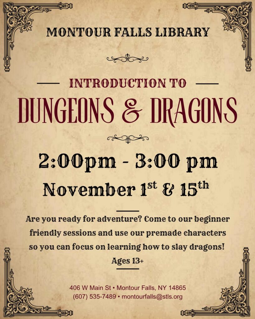 Need a space to play D&D? You can reserve space by calling or emailing us! (607)535-7489 • montourfalls@stls.org