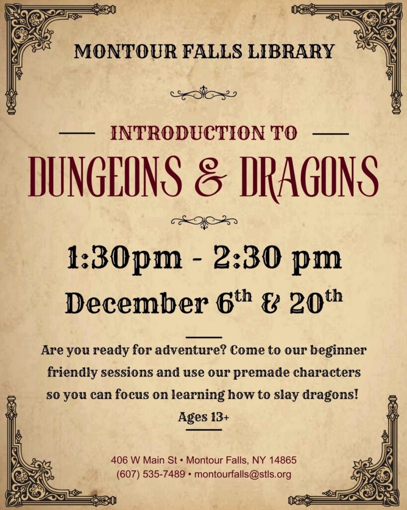 Introduction to Dungeons & Dragons • December 6th and 20th, 1:30-2:30 pm